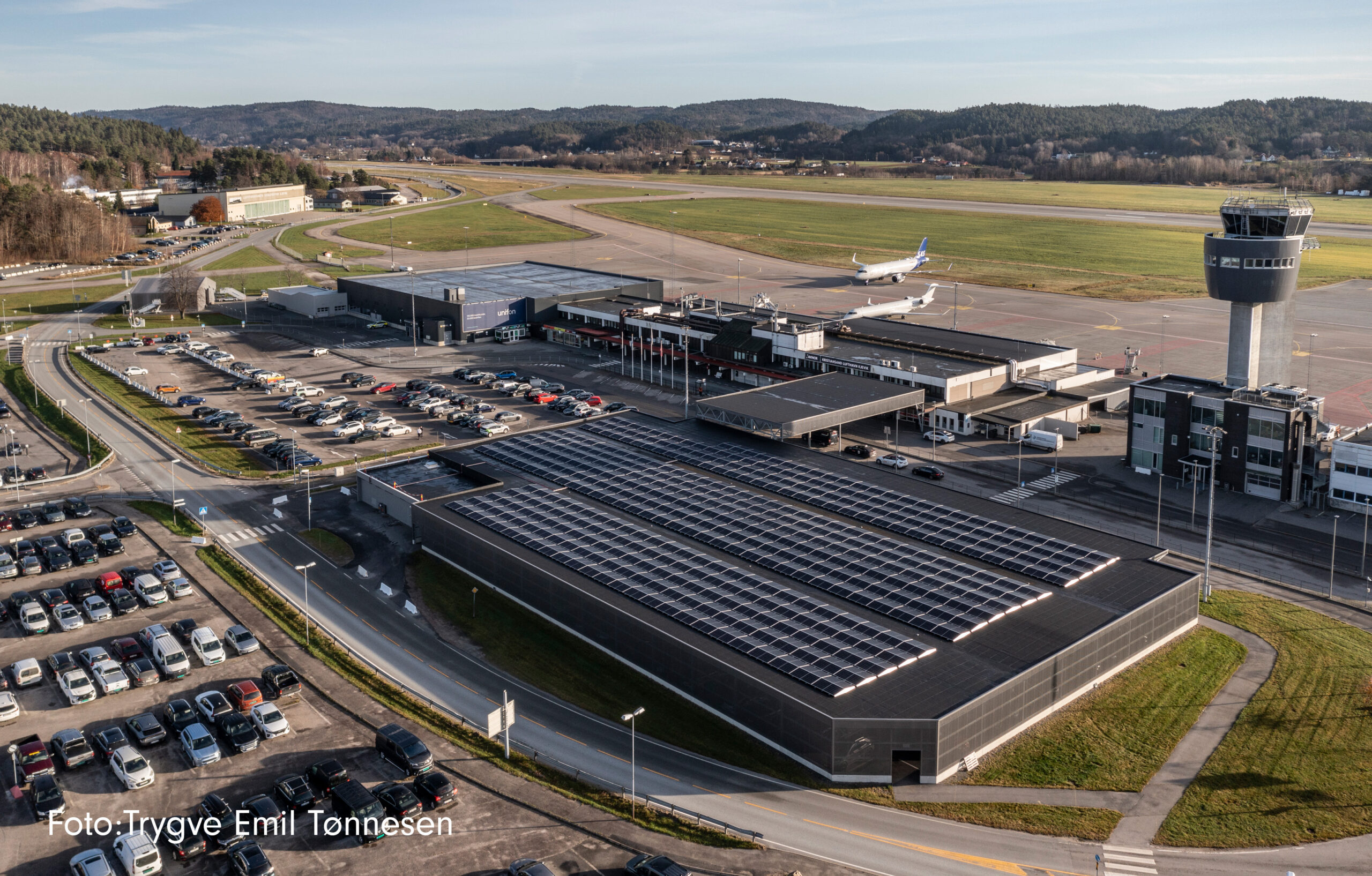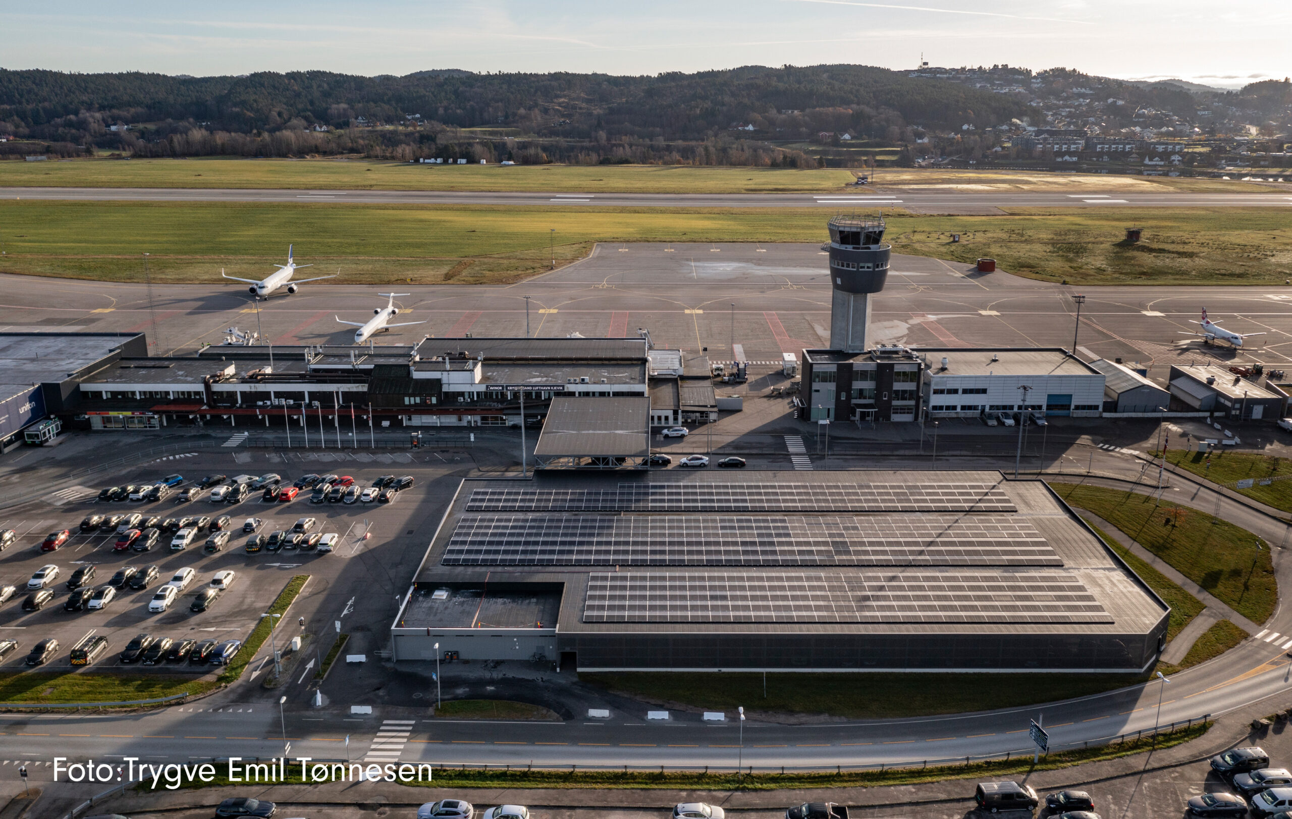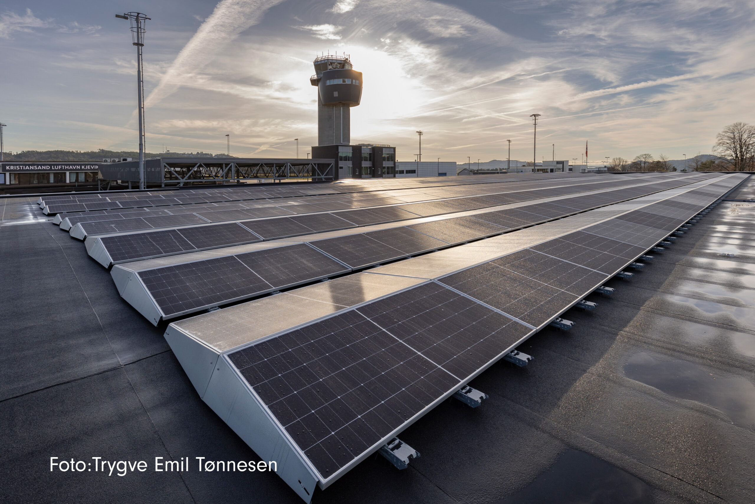 På Kjevik har Avinor kontrahert Solenergi Fusen til å installere solceller på taket til parkeringshuset.